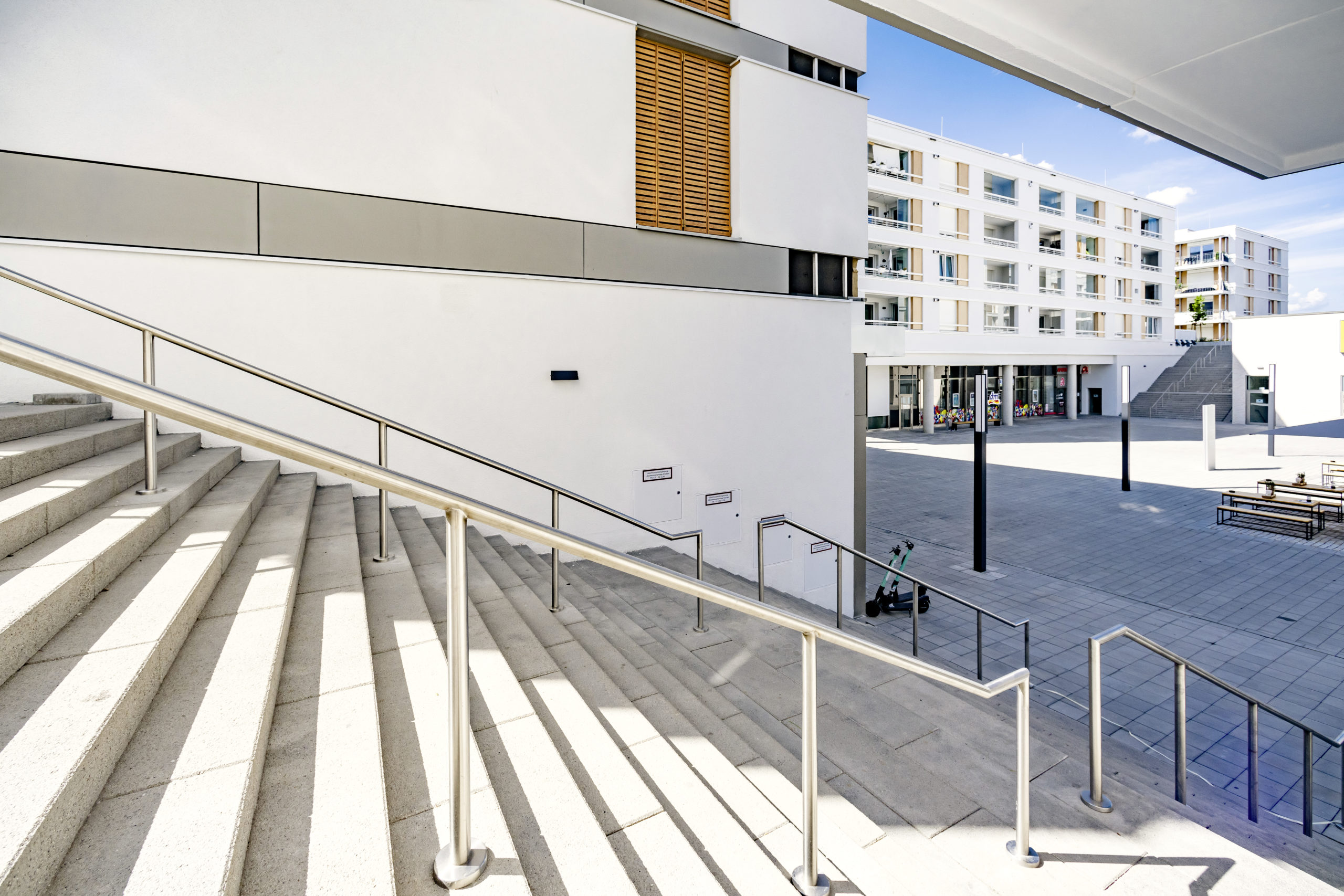 Im Herzen der Heidelberger Bahnstadt entstand mit den Westarkaden ein neues Stadtteil- und Versorgungszentrum, das Wohnen und öffentliches Leben vereint. Auf einer Grundstücksfläche von rund zwei Hektar wurden drei Gebäudeteile nach Passivhausstandard errichtet – mit ca. 300 Wohnungen, Büroflächen, einer Kindertagesstätte sowie vielfältigen Handels- und Gastronomieangeboten. Im Erdgeschoss befinden sich unter anderem Supermärkte, eine Drogerie und Gastronomiebetriebe.