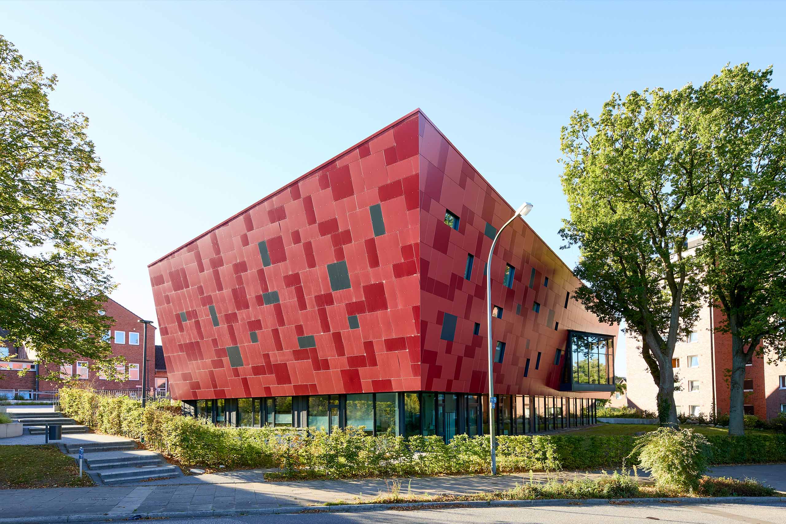 Mit der neuen Mehrzweckhalle am Berufsbildungszentrum (BBZ) in Bad Segeberg entstand ein architektonisch anspruchsvoller Neubau, der Lernen, Begegnung und Veranstaltungen verbindet. Der Entwurf von GPK Architekten zeichnet sich durch schräg gestellte Außenwände, eine matt schimmernde Metallfassade und einen gläsernen Verbindungstrakt zum Bestand aus.
