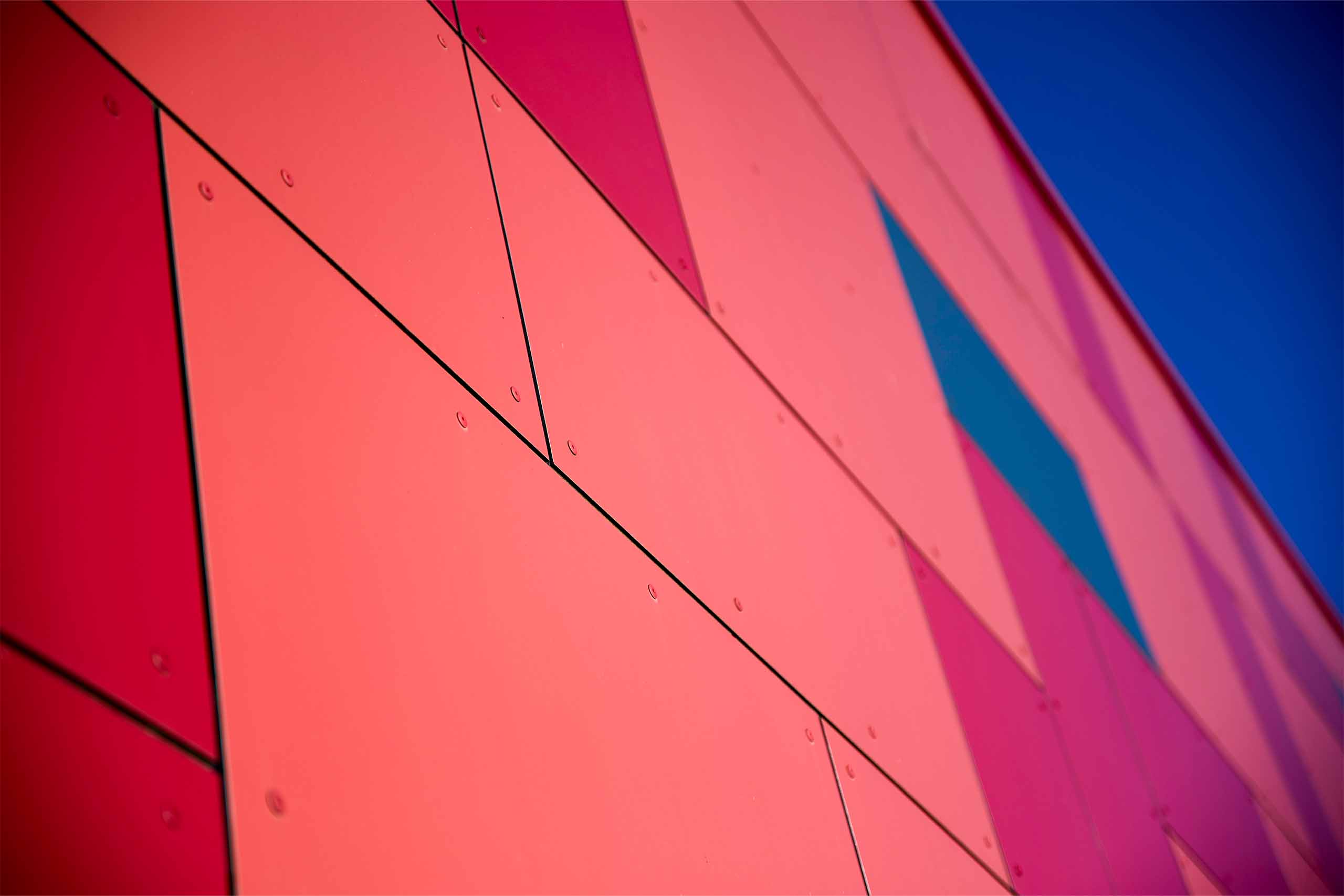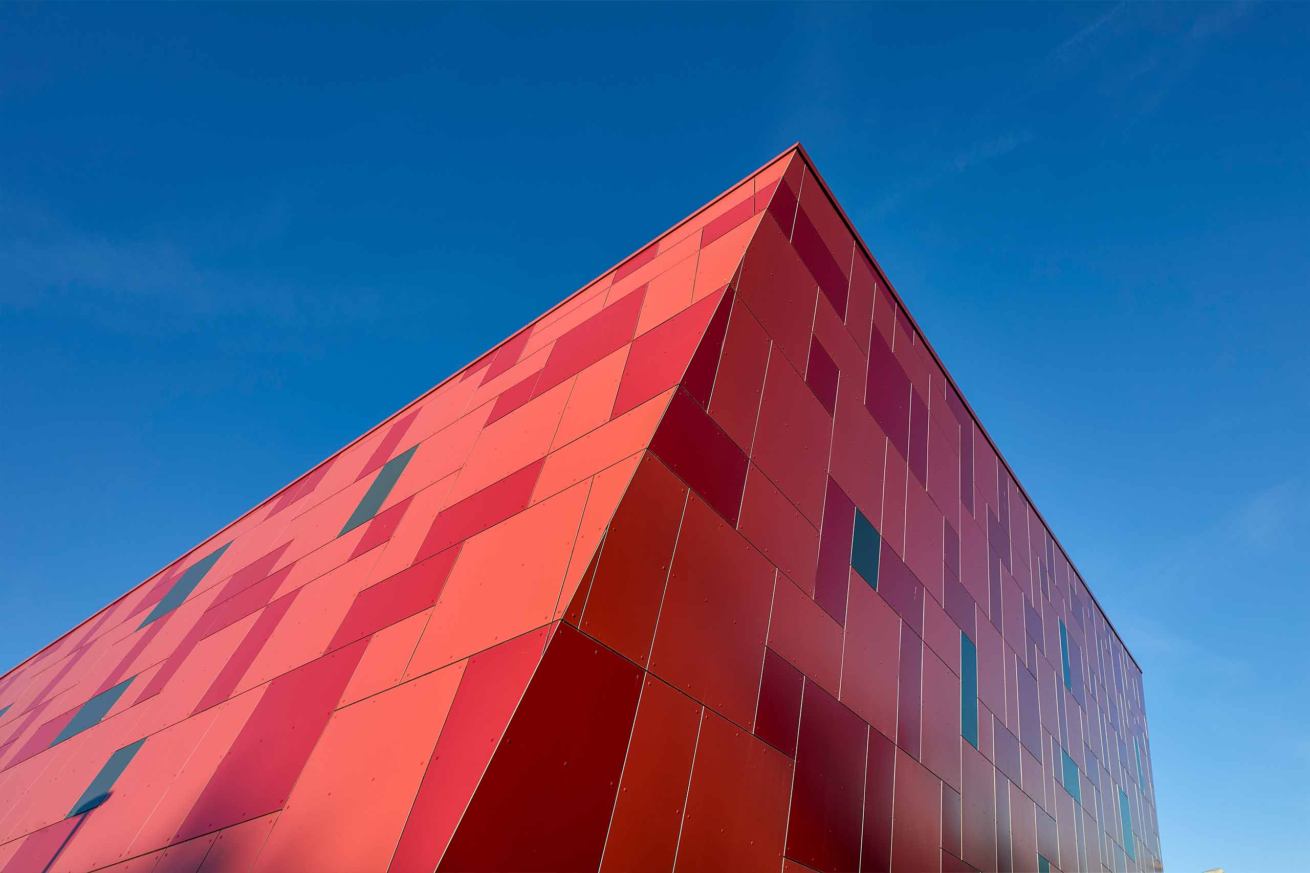 Die RONGE Fassadenbau GmbH übernahm die Herstellung und Montage der kompletten Metallfassade. Die geneigten Fassadenflächen stellten besondere Anforderungen an Planung, Fertigung und Montagegenauigkeit. Sämtliche Bekleidungselemente wurden passgenau gefertigt und auf einer präzise abgestimmten Unterkonstruktion montiert.