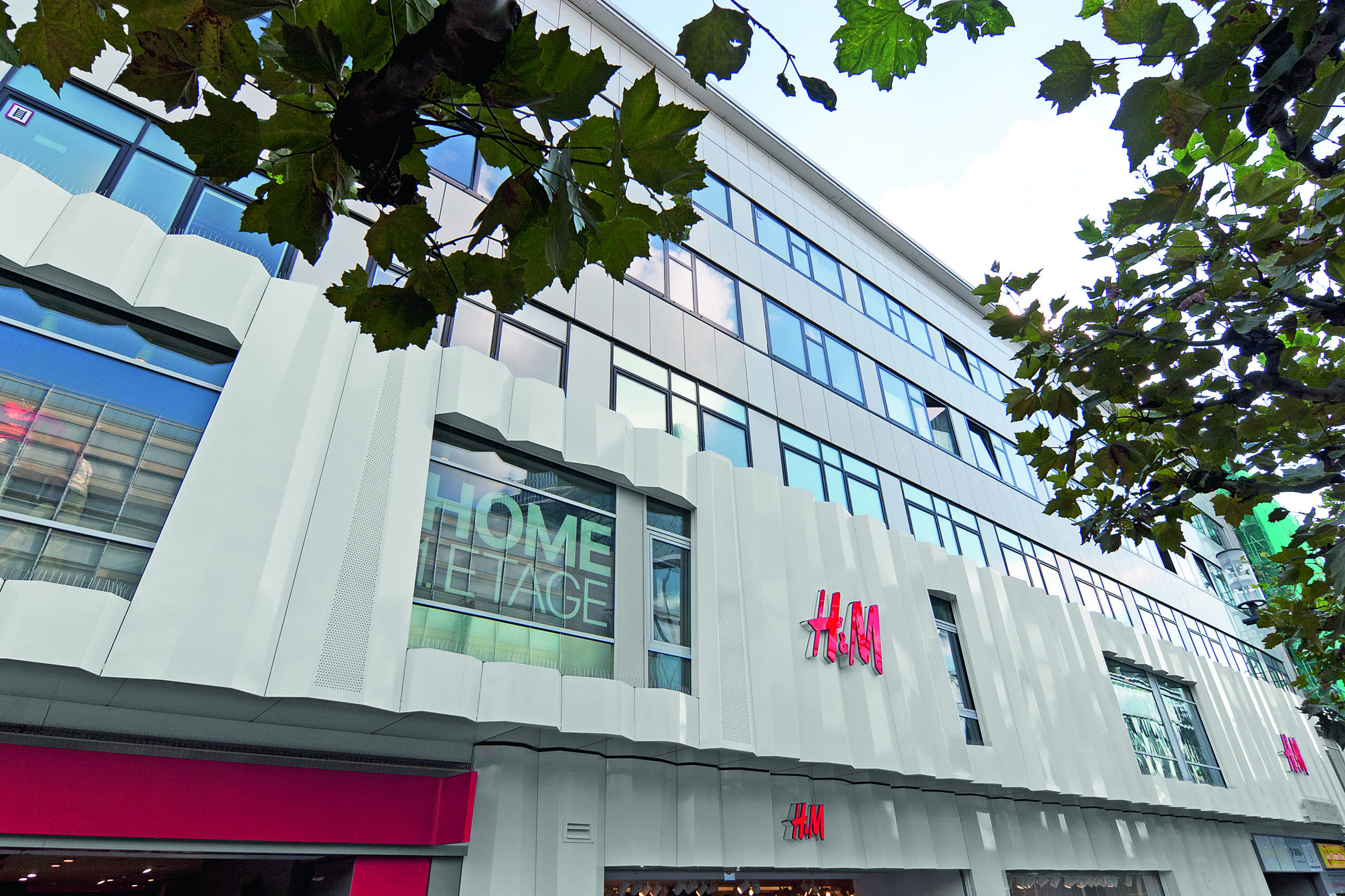 RONGE als Spezialist für individuelle Fassadensysteme realisierte von der Planung über die Produktion bis hin zur Montage das neue Erscheinungsbild von H&M auf der Frankfurter Einkaufsmeile.