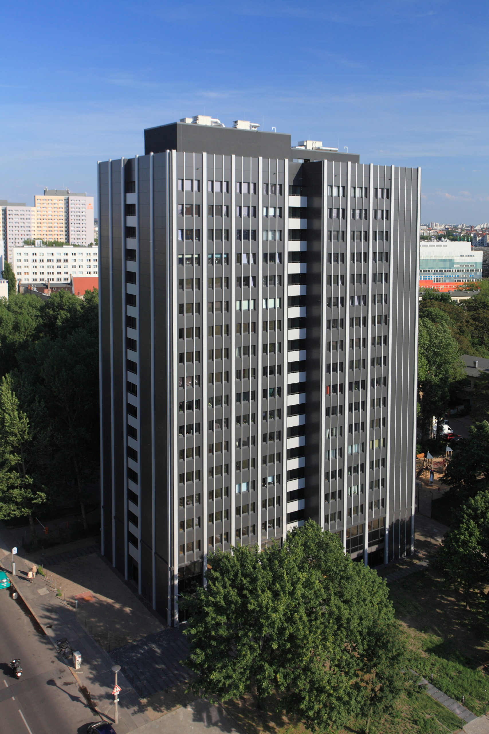 Das Berliner Wohngebäude aus dem Jahre 1969/1970 war dringend sanierungsbedürftig. Um Wohnen in dem 18-stöckigen Gebäude wieder attraktiv zu machen, entwickelte der Architekt Giorigio Gullotta ein Konzept zur Fassadensanierung.
